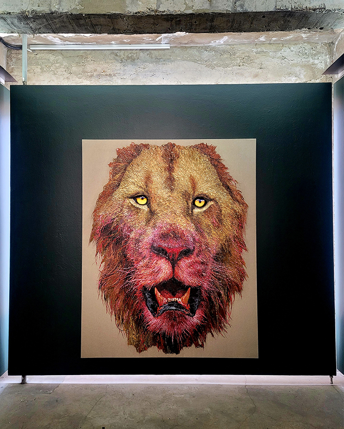 UNMASK- Lion #7, 162.2x130.3cm, Oil andcharcoal onlinen, 2024