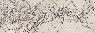 풀밭 연습 Grassfield Exploring, 2023, ink, conte on Korean paper, 142x406cm