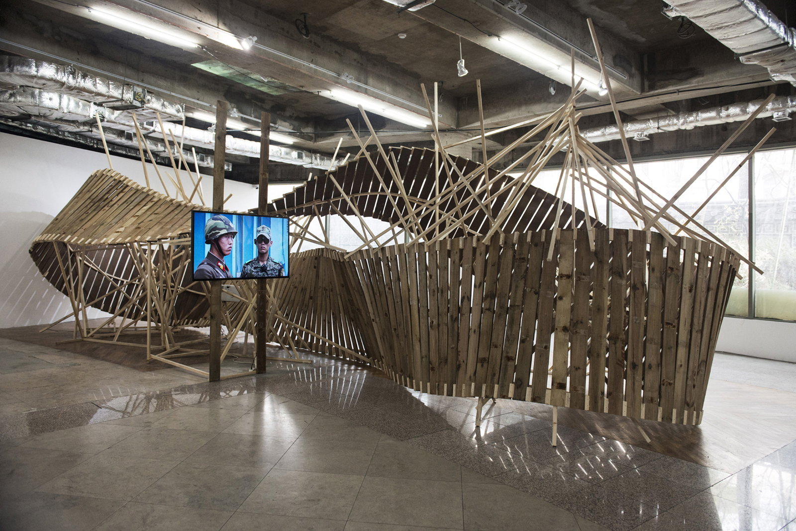음모, Charcoal on wall 3 x 10m installation view of HONG Won-Seok 2017