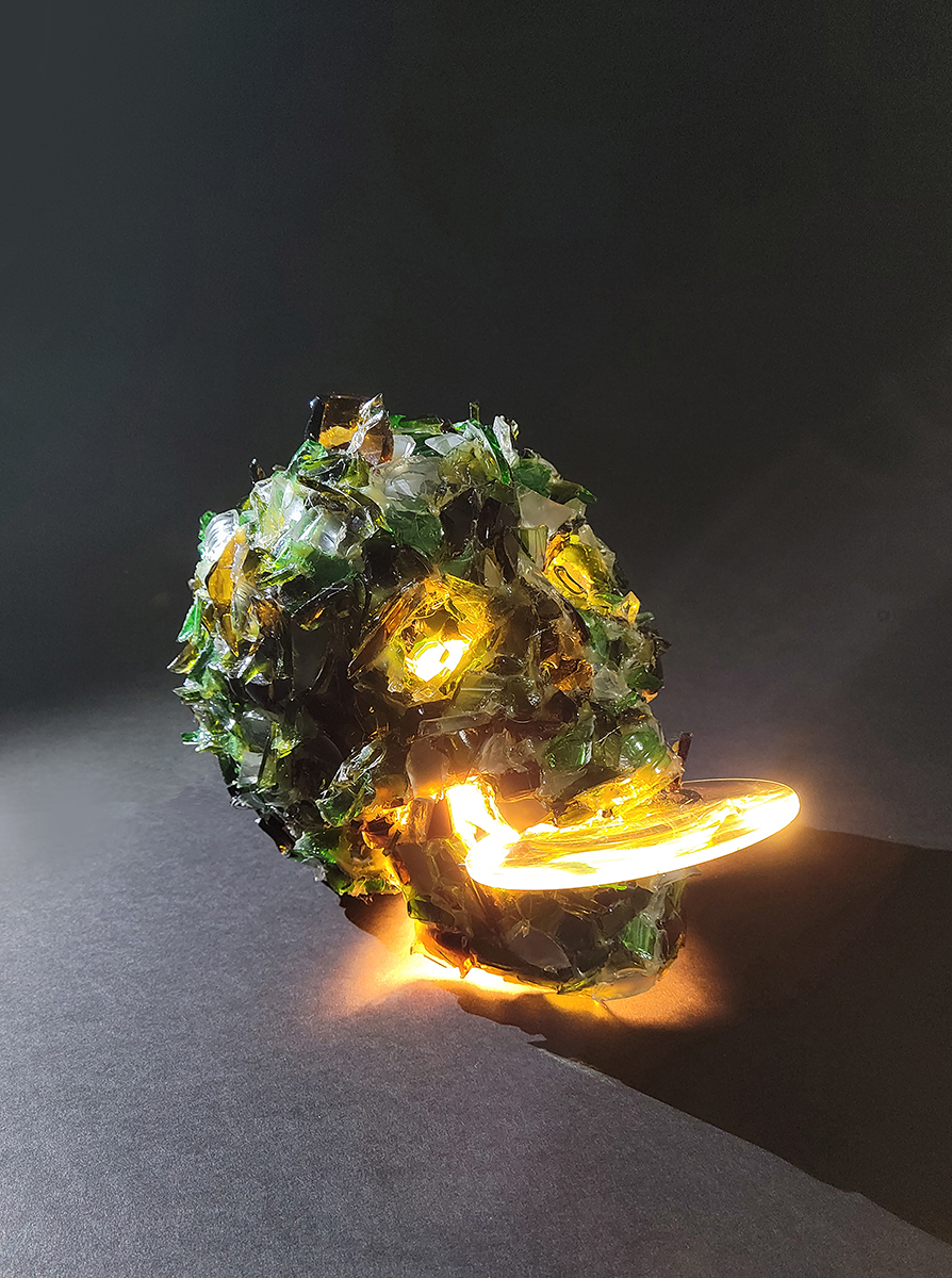 녹색과 갈색숙취, 소주,맥주병 파편, 60x58x37cm, 2022