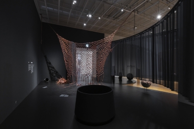 미, 노, 2021, 구의 싸개를 입은 별기둥, 철, 99.4_ 빛을 흡수하는 아크릴 안료, 실리콘, 실리콘 안료, 투명사, 여섯 몸의 부피는 모두 65,416cm³ 이쪽저쪽. (구작)