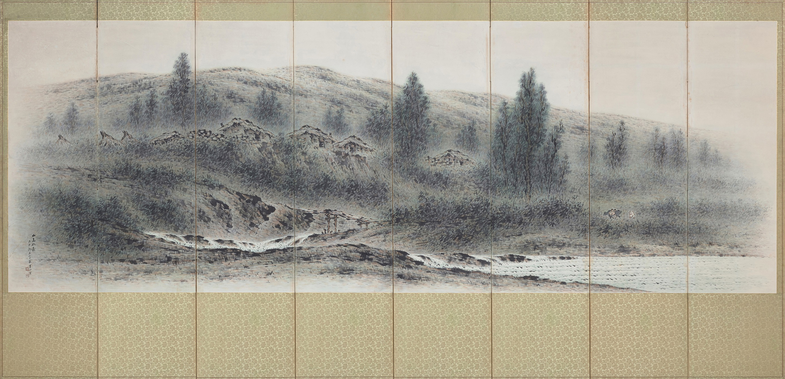 설촌보희 (雪村報喜), 1960, 종이에 수묵담채, 45 x 235cm