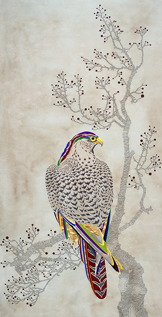 AJouissance_B-01, Pencil, colour pen and watercolour on Korean mulberry paper, 142x75cm, 2023