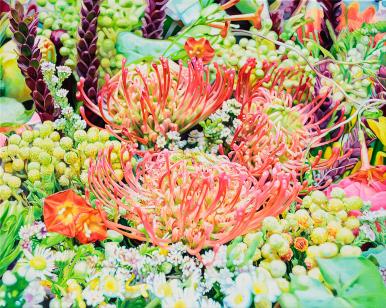이번 전시에 소개되는 꽃 회화는 일부를 과장될 정도로 확대한 시점이 특징을 이룬다. 꽃 한 송이 한 송이는 각기 독립체를 구성하는 것처럼 다양한 종을 보여주지만 이러한 꽃들의 군집은 자연과 인간, 그리고 우리가 살아가는 삶의 공동체를 대변한다. 이는 다양하고 친숙한 시선을 품어주는 친밀한 공간을 구성하지만 관찰자들은 꽃잎을 둘러싼 솜처럼 가벼운 꽃을 보고 있으면 마이크로한 시선으로 자연의 세밀한 풍경을 담아낸 풍경화처럼 장엄하고 숭고한 분위기를 느낄 수 있다. 익숙한 풍경이지만, 동시에 낯선 느낌으로 다가온다. 익숙하지만 낯섦(Unheimlich)을 느끼게 하는 양가적 감정을 소환시키는 정물화를 마주하게 된다.