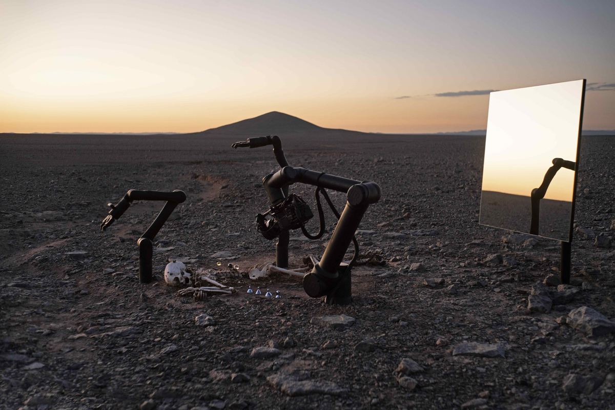 <카마타(Camata)>, 2024~진행 중, 기계 학습으로 구동되는 로보틱스, 자기생성 영상, 실시간 인공지능 편집, 사운드, 센서, 스틸 이미지 작가, 갤러리 샹탈 크루젤, 마리안 굿맨 갤러리, 하우저&워스, 에스더 쉬퍼, 타로 나수 제공.