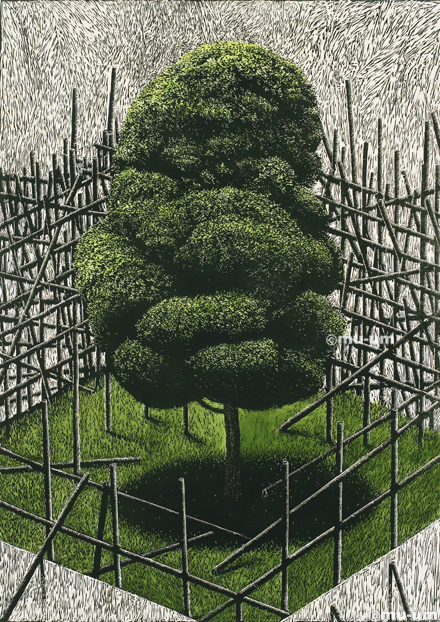 공사 중_나무, woodcut watercolor, 59.5x89.5cm, 2010