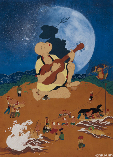 풍속도4-취생몽사, 감물염색 비단채색, 152x205cm, 2009
