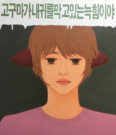 고구마가 내 귀를 막고 있는 늑힘이야, 캔버스에 아크릴, 45.5x53cm, 2016