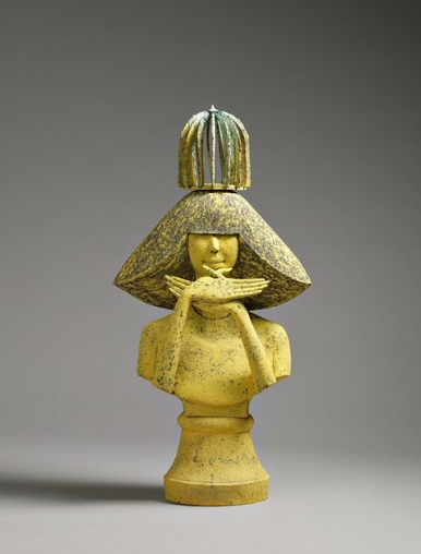 보다-Red Woman, 43x28x85cm, 석기태토 1250 산화소성, 2018