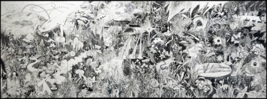 작별하지 않는다, 장지에 수묵과 펄 안료_193.9x521.2cm_2024