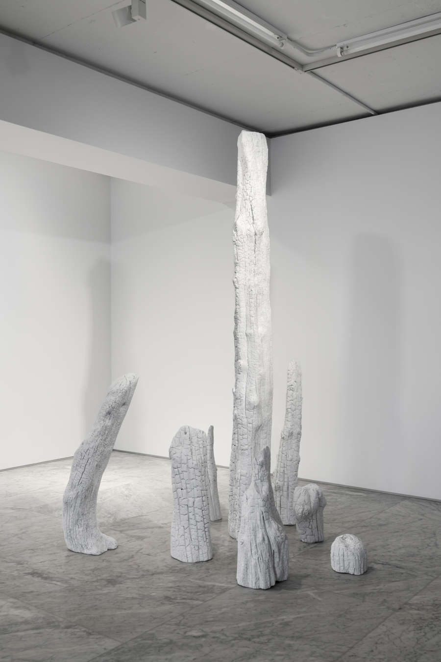 2025, Paint on burnt wood Dimensions variable, Courtesy of the artist & PKM Gallery