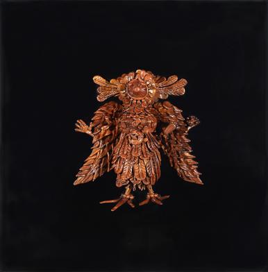 현생누대 신생대 이피세 대백과: 인간을임신하고에베레스트를넘는수리 (동물계, 척삭동물문, 조강, 매목, 수리과) , Mixed Media on Black Mirror, 63x63x12cm, 2017