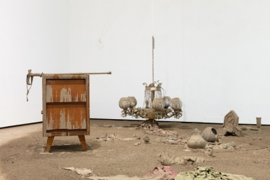 대지 속으로, 흙, 수집된 사물 외, 가변크기 (400*160*160cm), 2022
