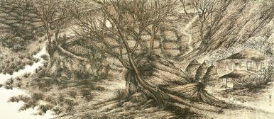 수촌 (水村), 1934, 종이에 수묵담채, 134 x 347cm