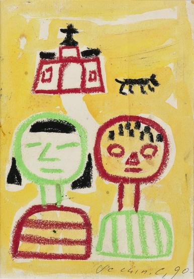 아이들과 교회, 종이에 크레파스, 20.3×14.3cm, 1950년대(1990년 서명)
