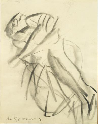 키르히너의 그림과 자연스레 이어보게 되는 이번 전시의 다른 출품작은 미국 추상표현주의 화가 윌렘 드 쿠닝의 드로잉 <무제>(1965)다. 표현주의라는 단어가 들어가 있는 데서 알 수 있듯 추상표현주의도 내면의 정서를 분출하는데 앞장선 미술이다. 특히 드 쿠닝은 붓에 체중과 힘을 실어 화포에 물감을 격렬하게 처바름으로써 물리적인 충격과 폭력성이 강한 그림을 그린 것으로 유명하다. 물론 <무제>는 종이에 목탄으로 그린 작품이므로 그런 정도의 파괴성을 보여주지는 않는다. 하지만 거칠 것 없이 내달린 목탄 선에서 그 특유의 생동하는 에너지를 선명히 느낄 수 있다. 드 쿠닝은 이렇듯 힘이 넘치는 드로잉을 많이 그렸다. 흥미로운 것은, 추상표현주의라는 이름과는 다소 거리감이 느껴질 정도로 드 쿠닝의 작품에서는 구상적인 사람 이미지를 자주 볼 수 있다는 것이다. <무제>에서 우리가 감지하게 되는 것도 사람의 형상이다. 그러나 종이 위를 내달리는 선들이 아주 거침이 없고 자유롭기에 그 구상적 특질은 어느새 조형의 하위 요소로 녹아들어 버리고 관객은 그의 조형 에너지가 자아내는 추상적 조화를 보다 큰 그림으로 받아들이게 된다.
