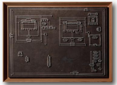 작가는 이번 전시에서 서울을 중심으로 실존했던 집(宮)의 형태를 궁궐도, 행차도 의궤, 종묘 등에서 가져와 재해석하고 재현한다. 기록에 남아있는 옛 도시와 집의 형태는 부감법, 투상법 등 전통 회화 모습을 유지하고 직선적이고 기하학적인 형태로 표현한다. 붉은 실과 흰색 실은 삶의 순환을 관통하는 소재인 동시에 인간이 가지는 많은 관계를 추상화 시켜 같은 장소에 다수의 심리적 공간이 동시에 존재할 수도 있음을 암시한다.