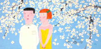 신철 작가는 ‘기억풀이’ 시리즈로 잘 알려져 한국에서 큰 인기를 끌고 있는 작가이다. 기억풀이는 빈 하늘을 배경으로 단발머리 소녀, 꽃, 모형비행기 등 소박하면서도 정감어린 소재들이 등장 하는데 보는 이로 하여금 따뜻한 감성을 불러일으킨다. 단순함은 궁극의 정교함이다 라는 말이 어울릴 만큼 신철 작가의 그림은 단순함 속에서도 많은 것 들을 표현한다.단발머리 소녀의 수줍은 듯 보이는 붉은 두 뺨이 때 묻지 않음 을 보여주고, 추억속의 아련한 첫사랑을 떠올리게 하는데. 삶이 매순간 평화로 울 순 없겠지만, 그럼에도 불구하고 우리 기억 속에 살아있는 사랑과 그에 대한 기억의 힘으로 오늘의 행복을 만들고 싶다는 작가의 긍정적인 철학이 담겨있다.