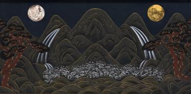 일월오봉도, 200X80cm, 한지에 분채, 호분, 진금, 2018