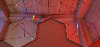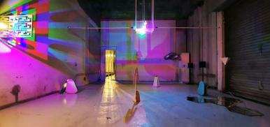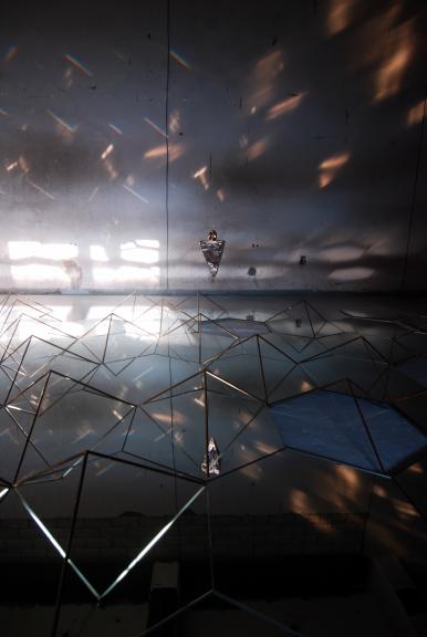 underdogs ensemble-약자들의 합주, 목공에서 버려지는 기레빠시잡토로 만들어진 세라믹, 건설현장에서 쓰고 남겨진 금속 조각, 거울, 스테인레스,모터_가변설치_2020_가변설치_2020