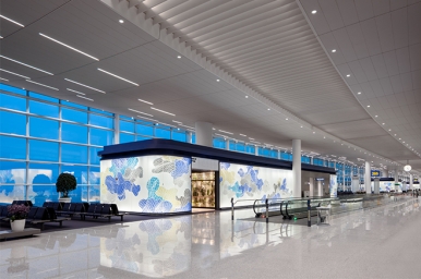 Wings of Vision, 2018, Commissioned project for the Departure Gate Wings at Incheon Airport Terminal 2 H 3.6 x 1600m Vinyl film sheets, Photo by Kim Inchul