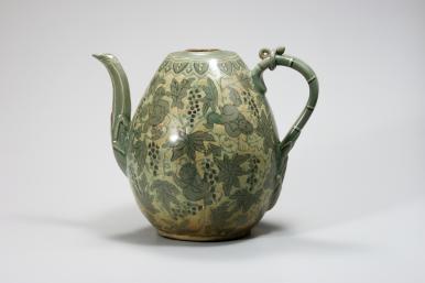 청자상감 포도동자문 주전자, 고려, 높이: 19.7cm, 몸통지름: 24cm, 국립중앙박물관 소장