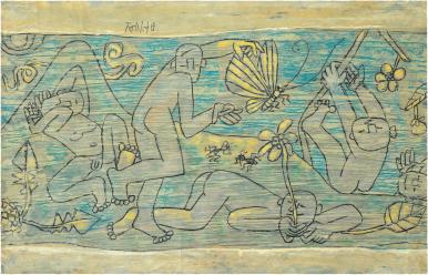 봄의 아동, 1952-53, 종이에 연필, 유채, 32.6×49.6cm, 개인소장
