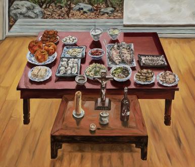 방사선 전문의와 십자가, 2020, 리넨에 유화, 53 x 45.5cm