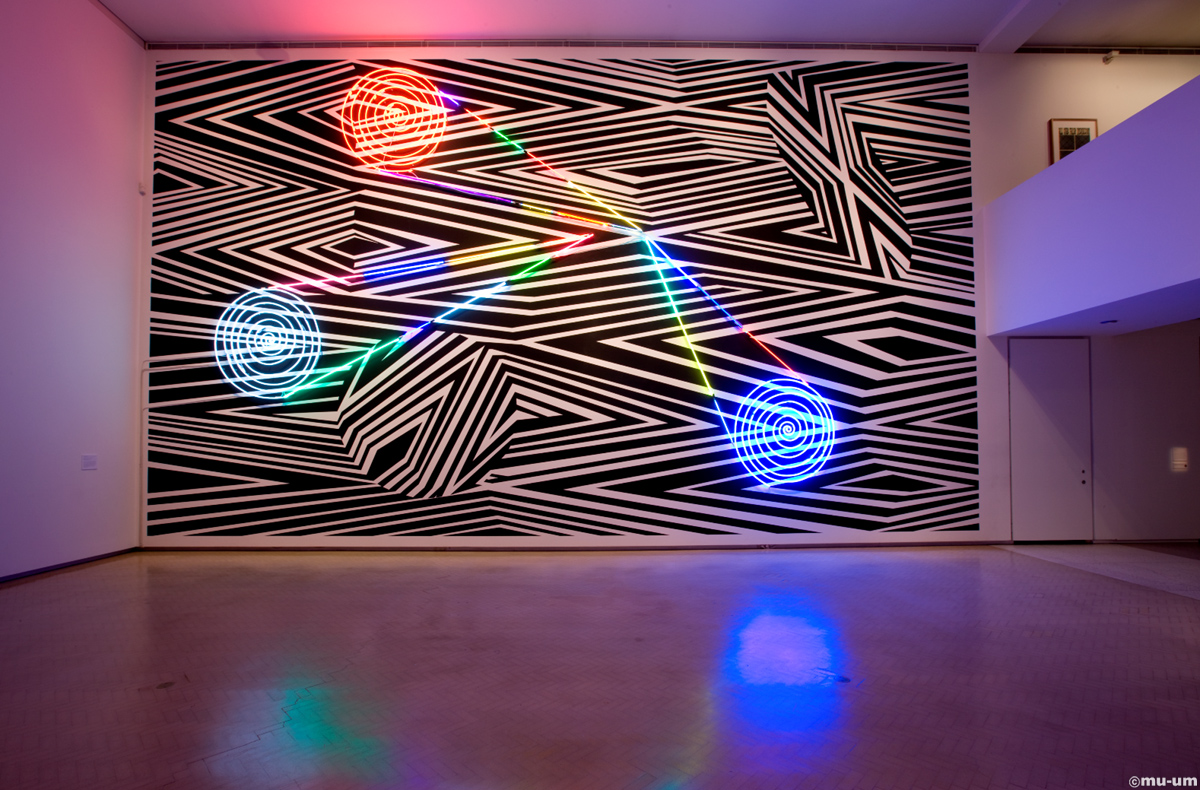순환회로: 세계의 작동 모델, 벽화, 네온 형광등, 가변크기, 2008, 시드니 현대미술관