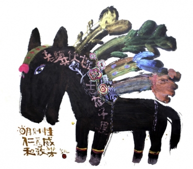호랑이-말, 한지위에 혼합재료, 12x14cm, 2014