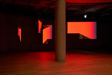 지하 2층 설치전경, LED, 아크릴 미러 가변 크기 2021 © SONGEUN Art and Cultural Foundation and the Artist. All rights reserved.