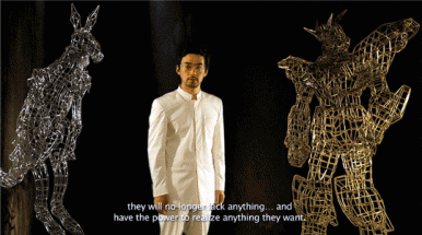 벗어난 교육(실수의 기회), 2021, 3채널 HD 비디오, 컬러, 사운드, 58분35초. 2021년 6월 23일, 8월 31일, 9월 30일에 퀸즐랜드주립미술관에서 진행된 즉흥퍼포먼스 기록 영상. 촬영: 제레미 비라그, 디에고 아퀼리잔. 포스트 프로덕션: 매튜 맥기건. 프로듀서 겸 촬영: 데니 라이언. 제 10회 아시아 태평양 현대 미술 트리엔날레 커미션. 2021년 제니퍼 테일러 유증금을 통해 퀸즐랜드주립미술관에 소장됨. 퀸즐랜드주립미술관 소장, 2021.47. 이미지 제공: