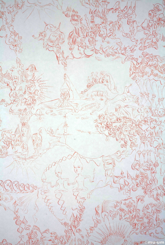 Breeding Drawing 8, Cinnarbar on Korean paper, 100x100cm, 2005