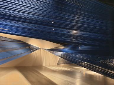 긴장 보행, 2022, 고무 밴드 1,200 × 2,000 × 1,000 cm 부산현대미술관 지원으로 제작