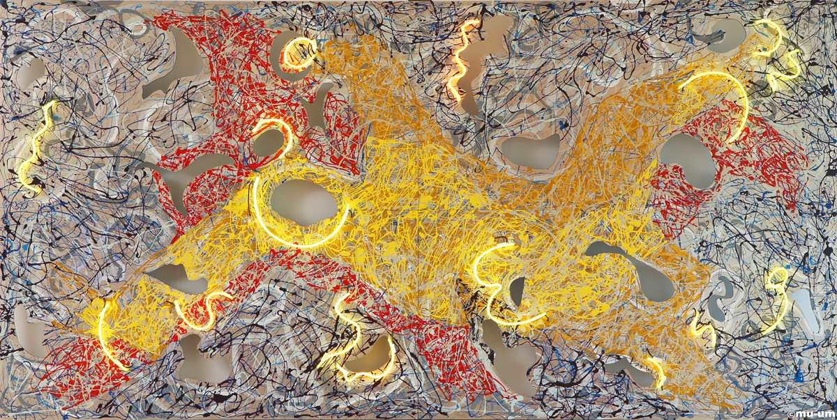 핏줄 3 Blood Line 3, Aluminum Board, Oil, Neon Light, 244x24cm, 2012
