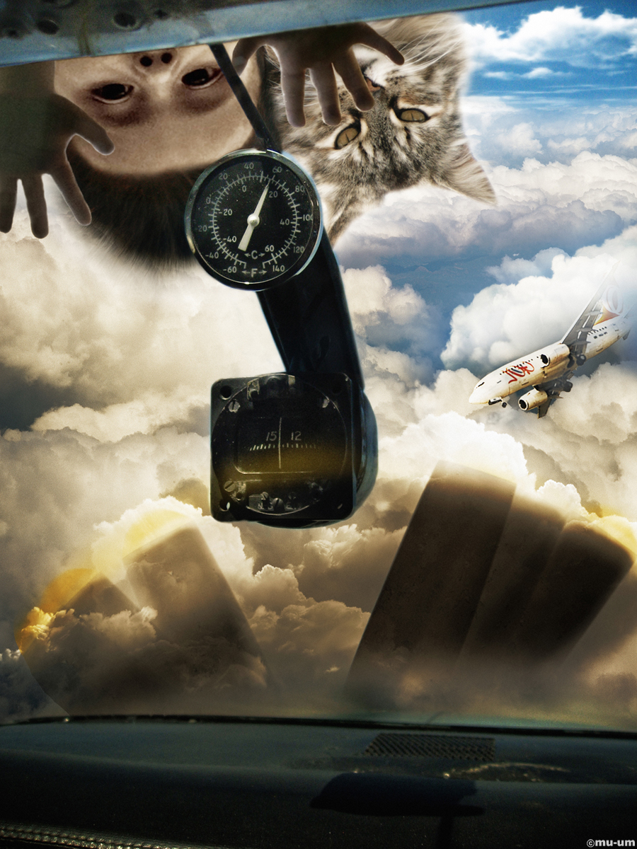 Flying Orphan and His Cat, Digital Pigment Print, 75x100cm, 2011