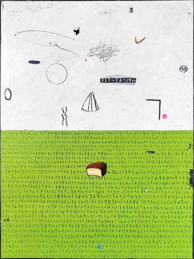 오세열 작가의 작품은 표면적으로는 단순한 색의 조합으로 보이지만, 실제로는 무수한 색을 덧칠(최소 7-8회)하고, 각각의 색면 위에 면도칼, 나이프로 일일이 긁어 숫자, 문자, 문양을 만들고 최종적으로 단색 혹은 두 가지 색으로 구성된 화면입니다. 작가의 작품에 등장하는 인물들은 완전한 모습이 아닌, 단순하게 질서 잡혀 있지만, 결핍과 아픔이 가득 담긴 형상입니다. 다섯살에 경험한 전쟁은 작가의 이러한 인물상을 이해하는데 도움이 됩니다. 또한 인물외에 작품에서 볼 수 있는 이용가치를 다 한 사물, 의미 없는 숫자, 화려하지 않은 수수하고 작은 꽃들 역시 주목 받지 못하는 소외된 존재에 대한 작가의 연민을 느끼게 합니다. 이러한 작업과정에 대해 작가는 다음과 같이 말합니다. “나는 캔버스를 하나의 ‘몸’으로 생각해요. 그림은 곧 나지요. 붓이 아닌 나이프를 이용해 밑 작업한 캔버스 위에 질감을 만드는 행위는 내 몸에 상처를 내는 행위와도 같아요. 인생에 즐거움만 있는 건 아니거든. 농부가 밭을 갈 듯, ‘노동의 맛’을 추구하는 거지요. 요즘 젊은 이들의 취향과는 잘 맞지 않을지도 모르겠어요. 산뜻하고 예쁜 그림을 찾으니까. 제 그림은 겉절이가 아니라 묵은지 같은 겁니다.”