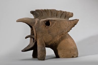 <빛나는 부엉이>, A.R.285, 1955, 백토, 화장토 장식, 나이트 각인, 유약시유, 37x31.5x4cm ⓒ 2023 - Succession Pablo Picasso - SACK (Korea)