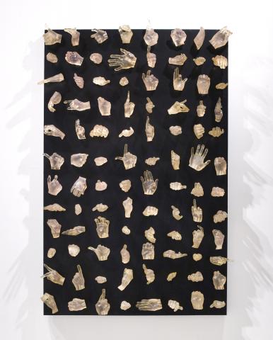 보여지는 손과 보는 손 / Hands to be seen and to be read, mixed media. sign language modeilling. 121 x 243 x 25cm. 2009