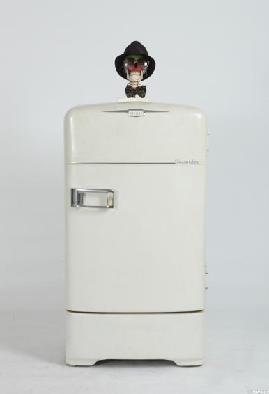 Chalna- Who am I BW2, Resin,acrylic paint,linen, steel,wooden board, 105x95xh35cm, 2018